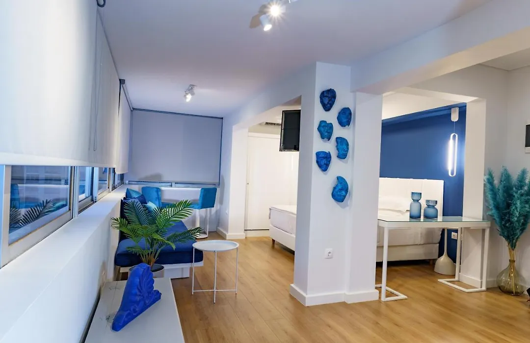 1-slaapkamer Graffitisuites#Azzure heeft een zitruimte uitgerust met airconditioning, eveneens een flatscreen TV met satellietzenders. Dit appartement is ook ingericht met een bank en een bureau. Deze accommodatie heeft 1 badkamer, voorzien van een apart toilet en een douche, samen met een haardroger en handdoeken.